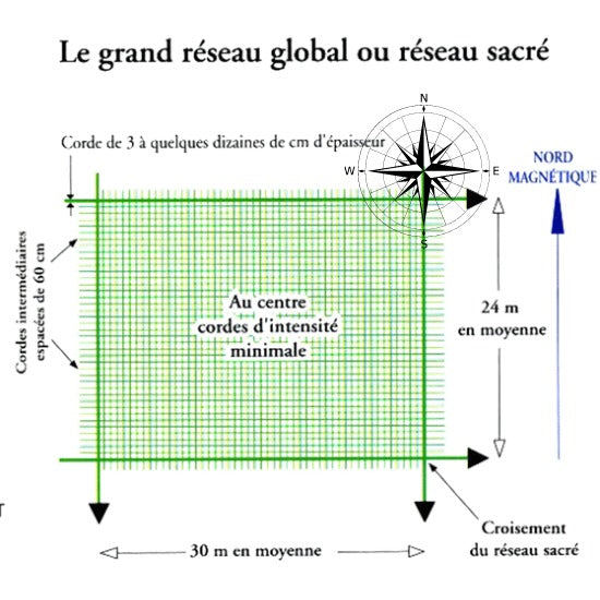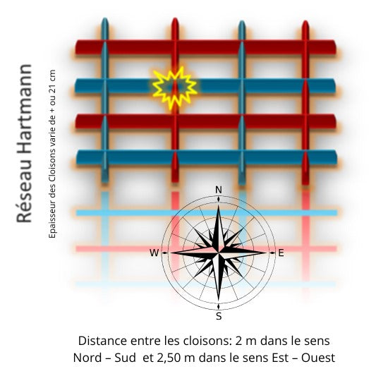 Un maillage d'énergie enveloppant la Terre, censé influencer la santé et l'environnement. Identifié par le Dr. Ernst Hartmann, ce réseau est composé de lignes nord-sud et est-ouest. On pense que ces lignes transportent des énergies électromagnétiques pouvant affecter les organismes vivants, entraînant potentiellement des perturbations du sommeil, de la fatigue ou du stress.