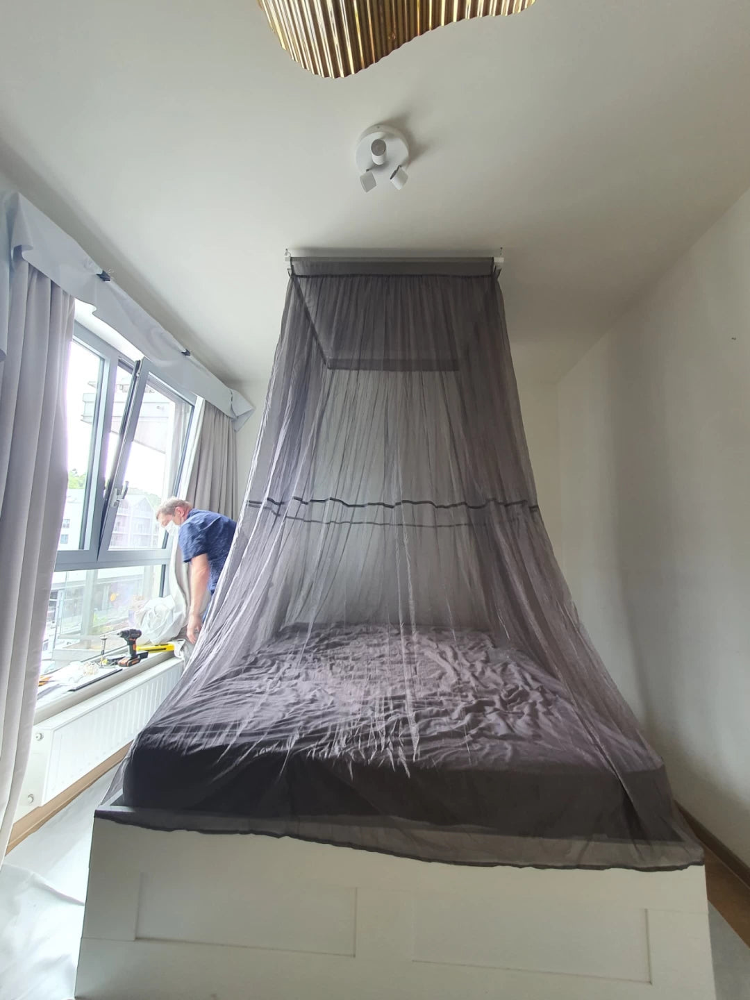 Baldaquin Magellan pour lit de deux personnes en Tulle d'argent équipé de deux ouvertures -50 dB à 1GHz