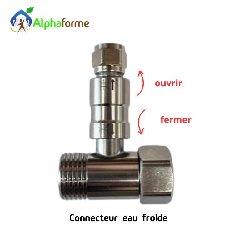 - Robinet dédié fourni (ou robinet deux voies en option)